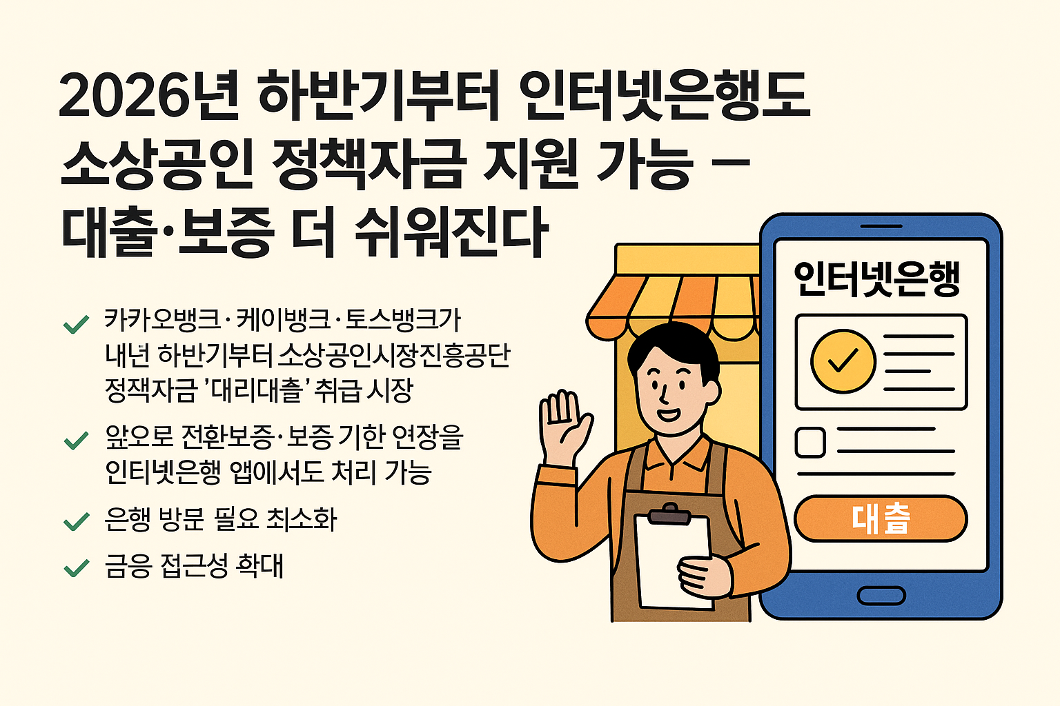 - 중소기업금융 체계에서 민관 협력이 강화된다는 상징적 의미도 있습니다 — 인터넷은행이 정책금융망에 공식 편입되는 변화입니다.